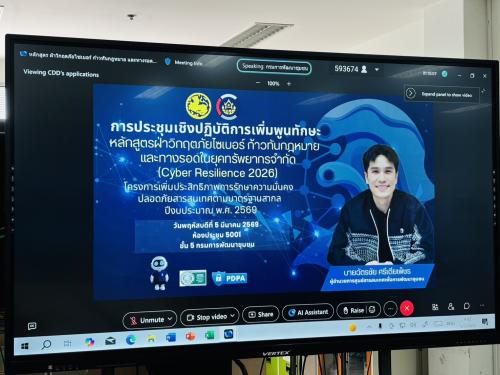 นายก้องเกียรติ รองรัตนพันธุ์ พัฒนาการจังหวัดระนอง พร้อมด้วยผู้อำนวยการกลุ่มงาน และเจ้าหน้าที่พัฒนาชุมชน ร่วมประชุมเชิงปฏิบัติการเพิ่มพูนทักษะ หลักสูตรฝ่าวิกฤติภัยไซเบอร์ ก้าวทันกฎหมาย และทางรอดในยุคทรัพยากรจำกัด (Cyber Resilience 2026) โดยมีวัตถุประสงค์เพื่อให้เจ้าหน้าที่ผู้เข้าร่วมประชุมมีความรู้ ความเข้าใจ กระบวนการรับมือเหตุการณ์ละเมิดความมั่นคงปลอดภัยไซเบอร์อย่างเป็นระบบ สร้างกลไกการทำงานที่ทำให้องค์กรดำเนินต่อไปได้แม้อยู่ในภาวะวิกฤต ผ่านระบบประชุมทางไกล (Cisco Webex Meeting) โดยมีเจ้าหน้าที่พัฒนาชุมชนอำเภอทั้ง 5 อำเภอ ร่วมรับฟังผ่านระบบ ทีวีพช.